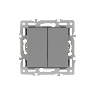 Механизм выключателя клавишный на 1 пост 2 клавиши (проходной), с суппортом из алюминия. Цвет - серый. Степень пылевлагозащиты - IP20.