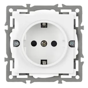 Механизм розетки с заземлением на 1 пост, с суппортом из алюминия. Цвет - белый. Степень пылевлагозащиты - IP20.