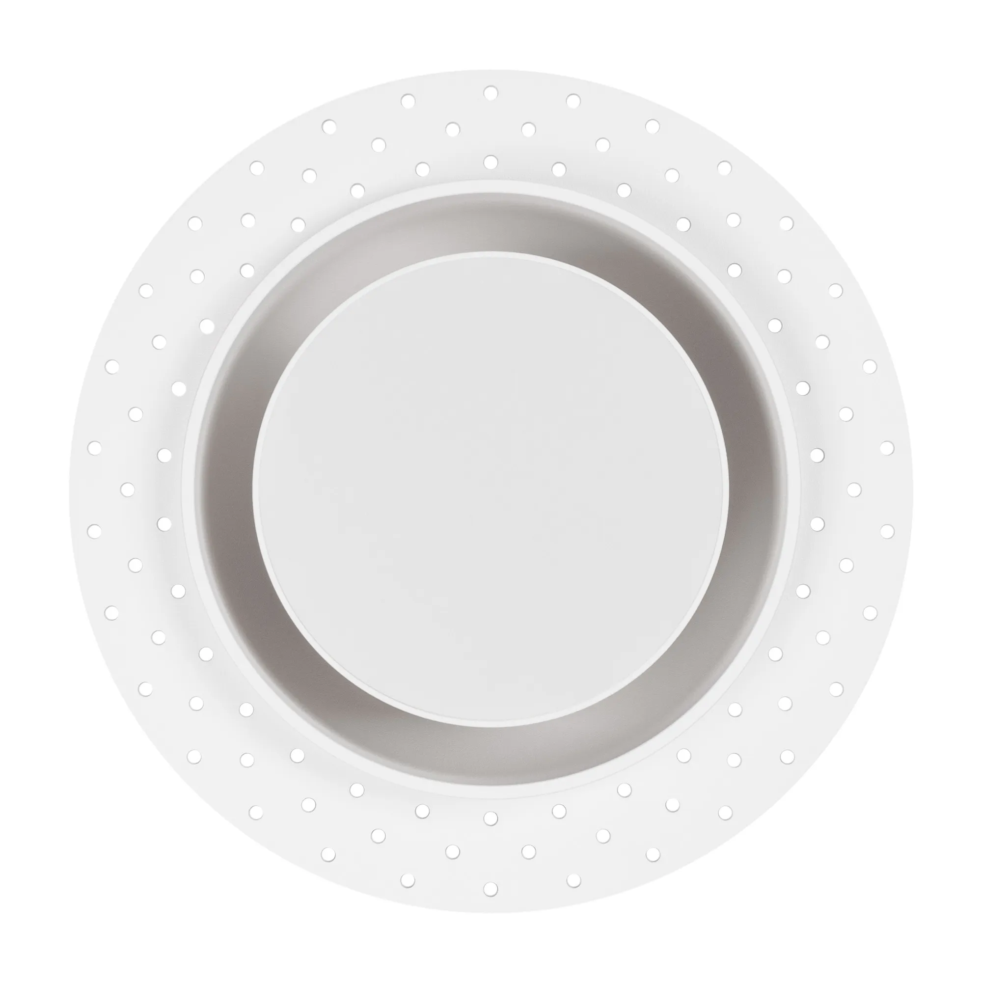 Встраиваемый безрамочный светильник. Мощность внутренней части 15 Вт, мощность внешнего диска 5 Вт, св. поток общий 918 лм, дневной 4000 K внутри теплый 3000 К снаружи, CRI>90, угол 120°, напряжение питания 230 В. Белый круглый корпус из алюминия, белый МАТОВЫЙ отражатель из PMMA, степень защиты IP20. Размер: диаметр 180 мм, высота 76 мм. Монтаж встраиваемый, диаметр установочного отверстия 130 мм. Драйвер 28-42 В, 150 мА, пульсация <1%. Драйвер и пульт в комплекте.
