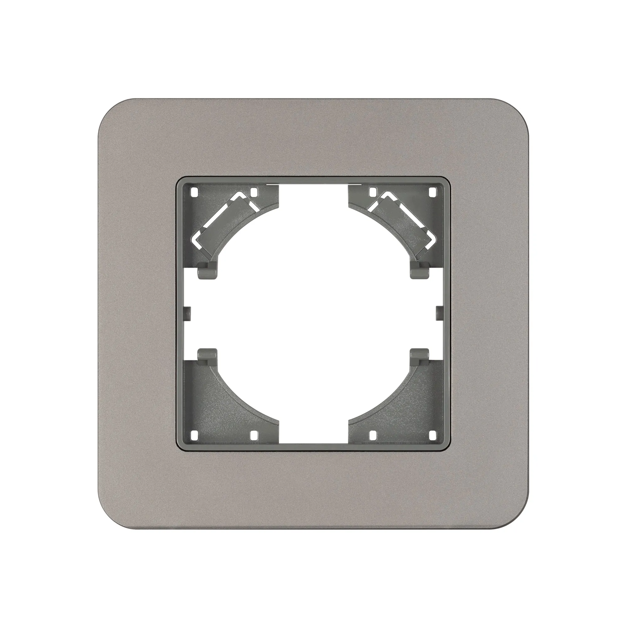 Рамка алюминиевая на 1 пост, под встраиваемый механизм. Цвет - серебристый с Soft-Touch покрытием. Среднего уровня герметичности IP20. Ориентация монтажа - горизонтальная (основным ориентиром служат посадочные выступы для накладки механизма).