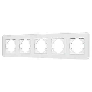 Рамка стеклянная на 5 постов, под встраиваемый механизм. Цвет - белый. Среднего уровня герметичности IP20. Ориентация монтажа - горизонтальная (основным ориентиром служат посадочные выступы для накладки механизма).