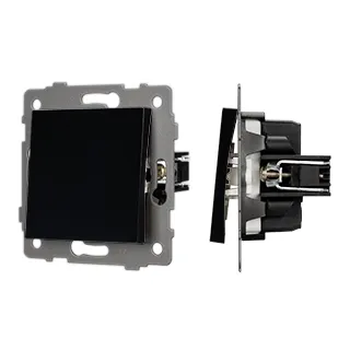 Механизм выключателя света клавишный на 1 пост 1 клавиша (непроходной). Цвет - черный. Без фронтальной рамки. Уровень пылевлагозащиты IP20. Выключатель устанавливается в стандартный круглый подрозетник.