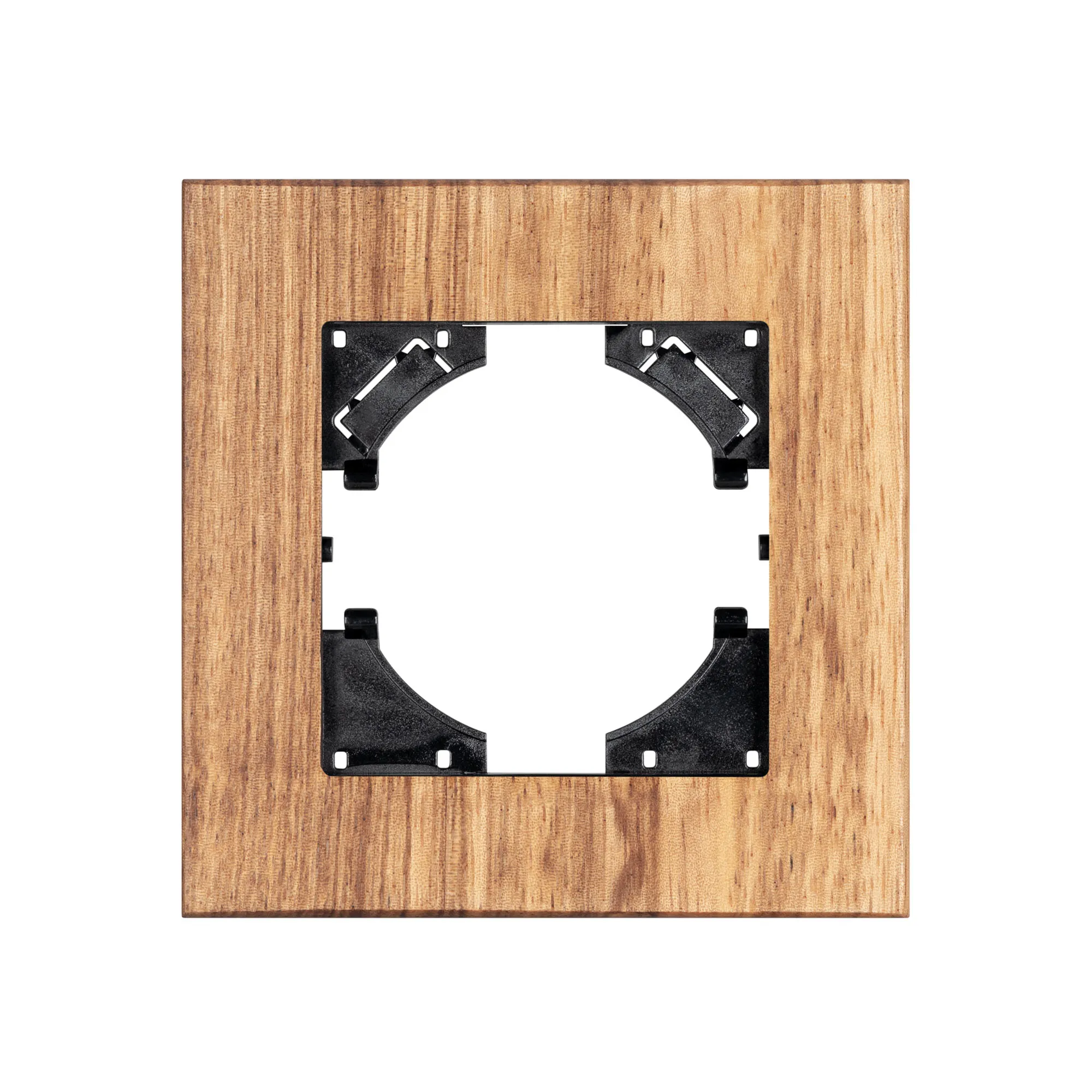 Рамка пластиковая на 1 пост с накладкой из натурального дерева, под встраиваемый механизм. Цвет - натуральное дерево* (осветленное). Среднего уровня герметичности IP20. Ориентация монтажа - горизонтальная (основным ориентиром служат посадочные выступы для накладки механизма).