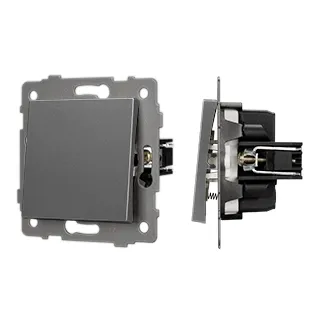 Механизм выключателя света клавишный на 1 пост 1 возвратная клавиша. Цвет - серый. Без фронтальной рамки. Уровень пылевлагозащиты IP20. Выключатель устанавливается в стандартный круглый подрозетник.