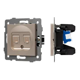 Механизм компьютерной розетки на 2 поста 6-й категории. Цвет - золотой. Без фронтальной рамки. Уровень пылевлагозащиты IP20. Тип подключаемого разъема - RJ45. Розетка устанавливается в стандартный круглый подрозетник.