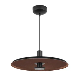 Подвесной светильник. Мощность 12 Вт, св. поток 648 лм, 64 лм/Вт, теплый 2700 K, CRI>94, угол 36°, напряжение питания 230 В. Черный фигурный плафон из переработанного фетра с кофейной внутренней поверхностью, линза-рассеиватель из PMMA, степень защиты IP20. Размер: диаметр 450 мм, высота 145 мм. Монтаж подвесной, длина подвеса 2000 мм, регулируемая. В комплекте 2 вида чаш. Габариты чаши (встраиваемая) Ø80 х 23 мм, врезное отверстие Ø60 мм. Габариты чаши (накладная) Ø120 x 35 мм. Драйвер 59В, 300 мА, пульсация <1%. Управление по TRIAC.