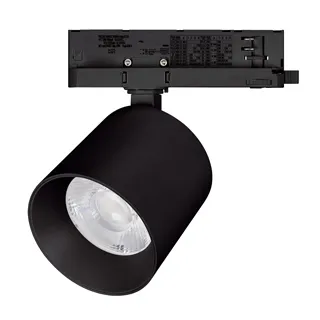 Светильник для трехфазных треков, 36 Вт. Цвет свечения ДНЕВНОЙ 4000K, световой поток 3200 лм, угол 50°, CRI>90. Корпус круглый, металл, цвет черный, IP20. Размеры Ø100x93 мм. Входное напряжение AC220-240V, мощность 36 Вт. Драйвер встроенный (24-42V, 850 mA).Пульсация <1%.