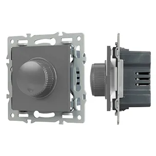 Механизм регулировки света на 1 пост, с суппортом из алюминия. Цвет - серый. Без фронтальной рамки. Уровень пылевлагозащиты - IP20. Механизм устанавливается в стандартный круглый подрозетник. Максимальная нагрузка 300 Вт только для ламп накаливания и галогенных, 100 Вт только для энергосберегающих и светодиодных ламп.
