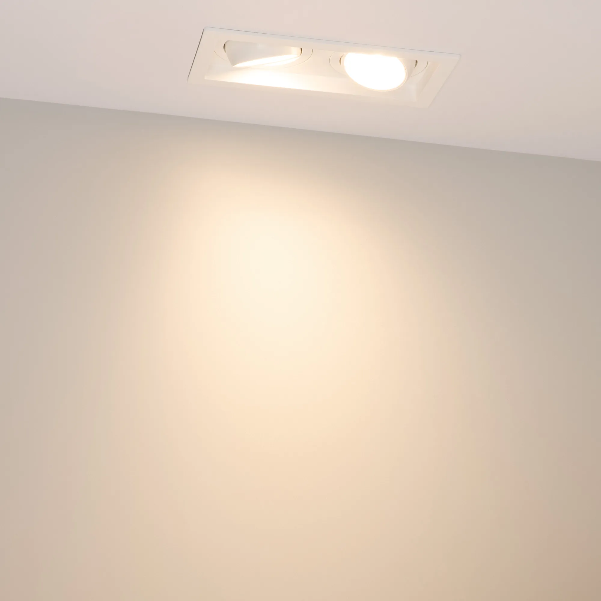 Встраиваемый карданный светильник. Мощность 2х12 Вт, св. поток 2788 лм, 116 лм/Вт, тёплый 3000 K, CRI>92, угол 40°, напряжение питания 230 В. Белый корпус из алюминия, белая вставка, степень защиты IP20. Размер: длина 170 мм, ширина 90 мм, высота 80 мм. Монтаж встраиваемый, установочное отверстие: длина 155 мм, ширина 75 мм. Драйвер 27-40 В, 300 мА, пульсация <2%.