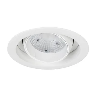 Встраиваемый карданный светильник. Мощность 30 Вт, св. поток 2650 лм, 89 лм/Вт, тёплый 3000 K, CRI>92, угол 50°, напряжение питания 230 В. Белый корпус из алюминия, белая вставка, степень защиты IP20. Размер: диаметр 135 мм, высота 125 мм. Монтаж встраиваемый, установочное отверстие: диаметр 120 мм. Драйвер 24-42 В, 750 мА, пульсация <2%.