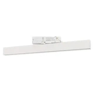 Светильник для треков/шин 4 провода с управлением DALI. Мощность 25 Вт, св. поток 2078 лм, 83 лм/Вт, теплый 3000 K, CRI>90, угол 100°, напряжение питания 230 В. Белый корпус из алюминия, материал рассеивателя PC, степень защиты IP20. Размер: длина 605 мм, ширина 34 мм, высота 50 мм. Драйвер 10-42В (300-800 мА), 50/60Гц, максимальная мощность 42W. Монтаж на трек 3-фазный.