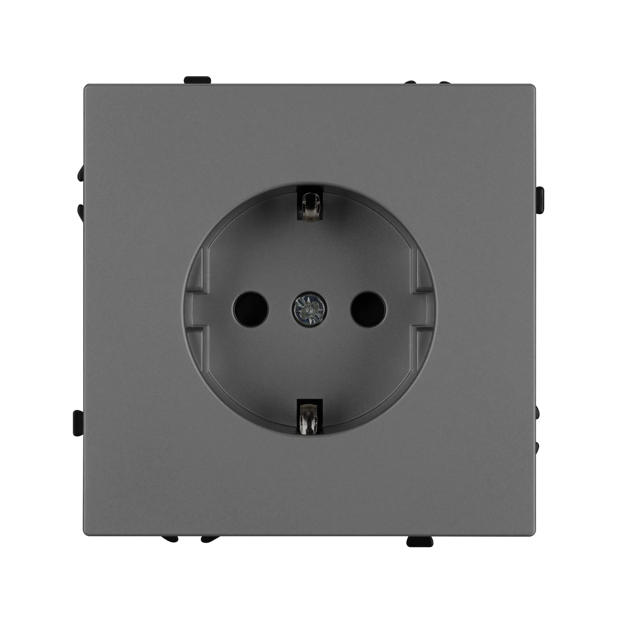 Механизм розетки с заземлением на 1 пост. Цвет - серый, с Soft-Touch покрытием. Без фронтальной рамки. Уровень пылевлагозащиты IP20. Розетка устанавливается в стандартный подрозетник круглого сечения диаметром 60мм.