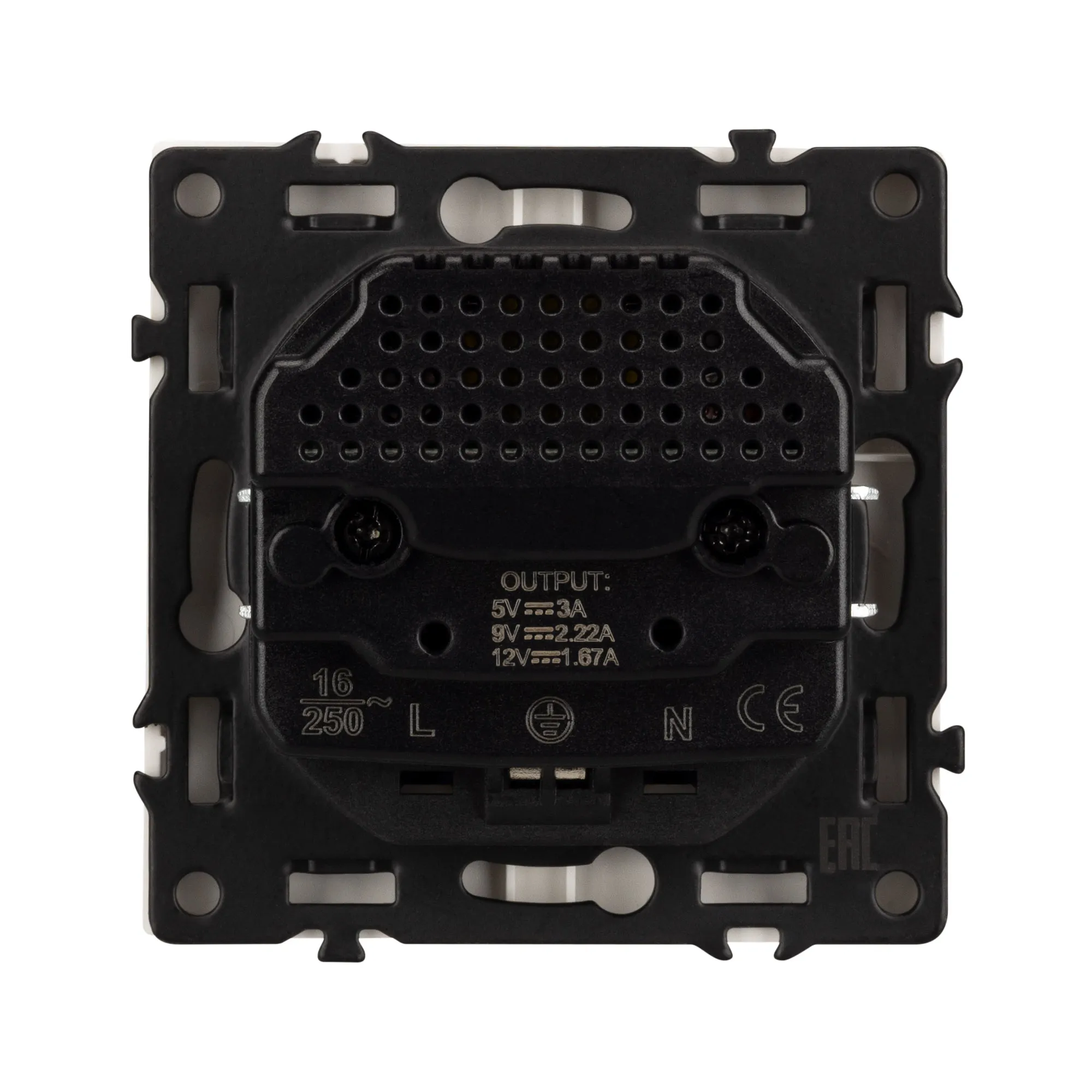 Механизм розетки с заземлением 1 пост и 2 USB Type A+C порта. Цвет - золотой, с Soft-Touch покрытием. Без фронтальной рамки. Уровень пылевлагозащиты IP20. Розетка устанавливается в стандартный подрозетник круглого сечения диаметром 60мм.