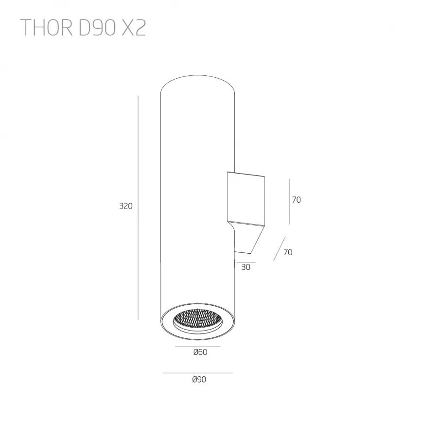 1 Thor.Gx2/Up&Down Светильник Up&Down диаметром 90мм. 10°/30°/60° 20 Вт 2900 Лм 4000К / 3000К d90*320мм
