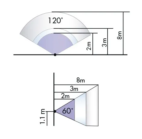 - Дальность действия перпендикулярно 8 м.