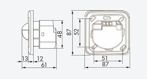 • Габариты Д 87 x Ш 87 x В 61 мм
