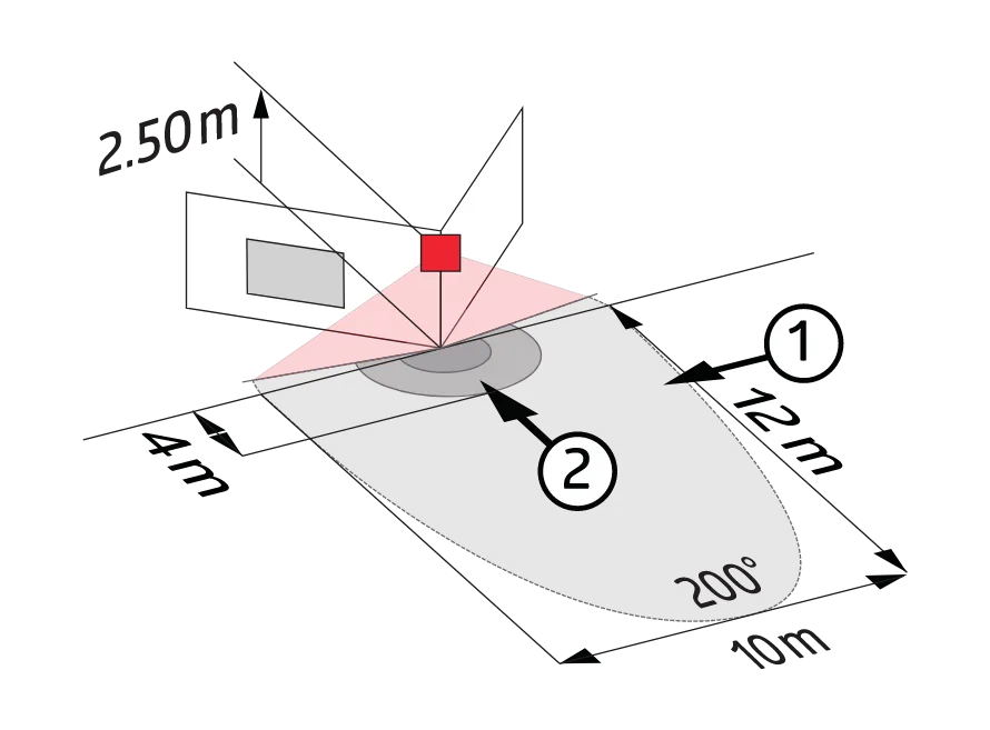 Контролируемая зона (тангенциальное движение): 250 м² / 2,5 м монтажной высоты