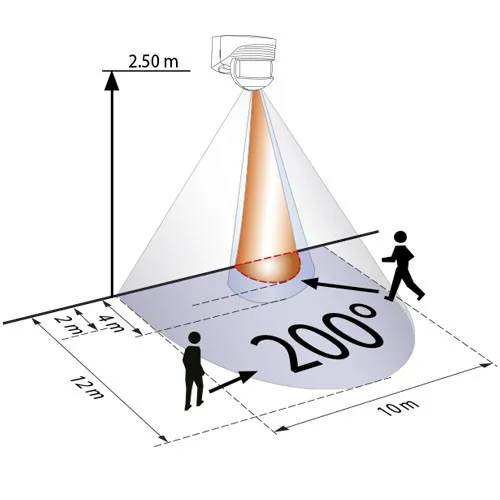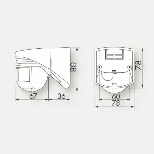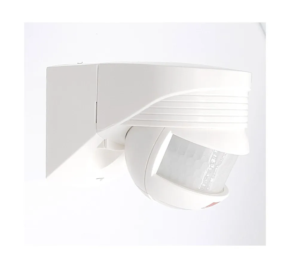 - Уличный датчик движения с диапазоном обнаружения 200°. Цвет белый