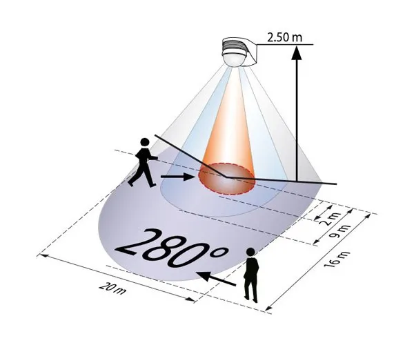 - Уличный датчик движения с диапазоном обнаружения 280°, электронным управлением от микропроцессора, Цвет серебристый