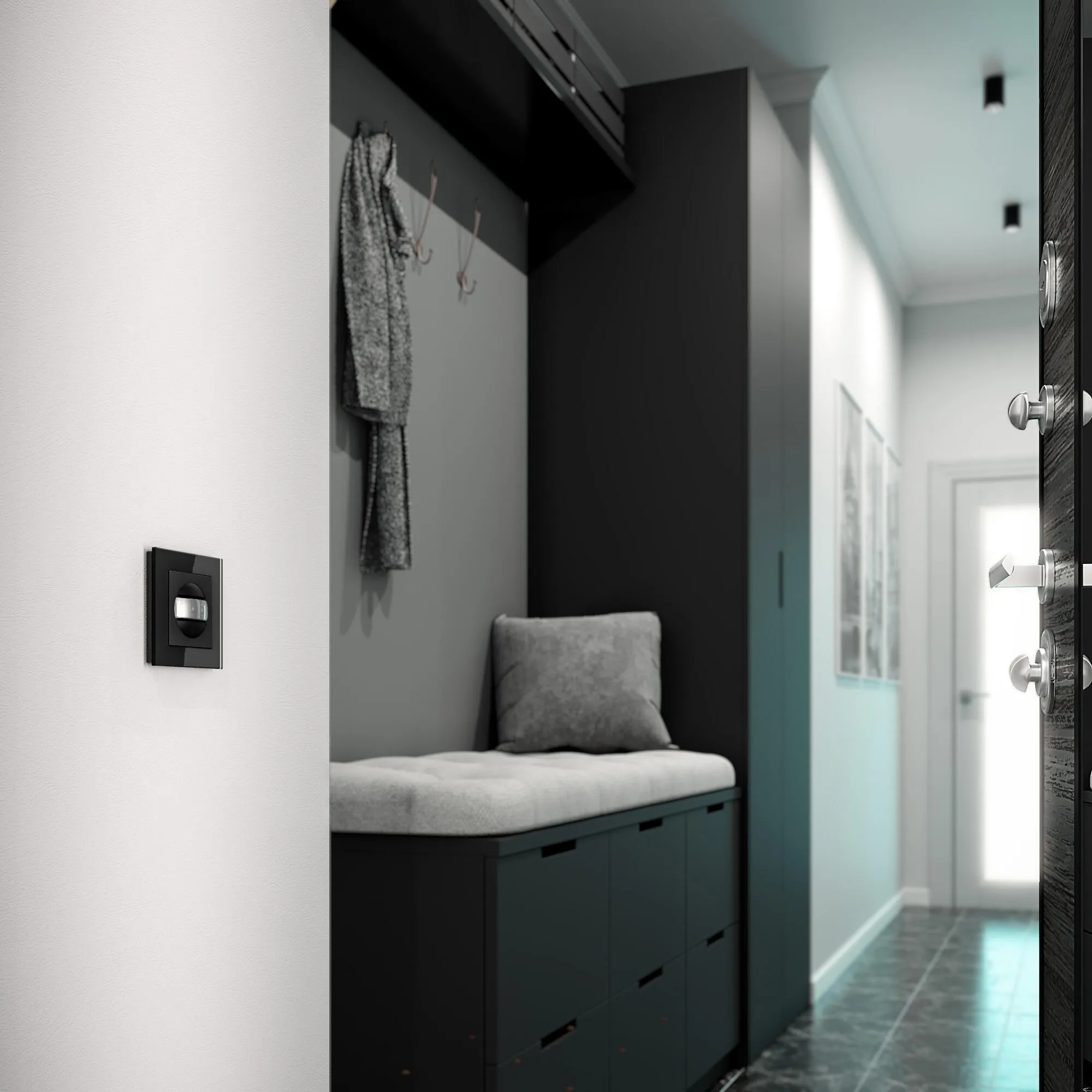 Датчик движения широко применяется для автоматического включения света во входных зонах, санузлах, коридорах, лестницах.