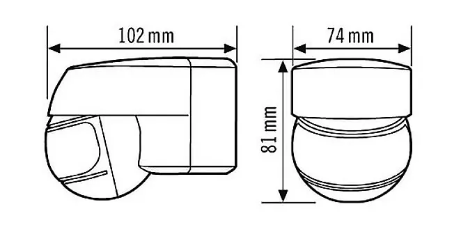 Регулировка дальности действия механическим способом путем наклона шарика датчика движения, макс. 80°