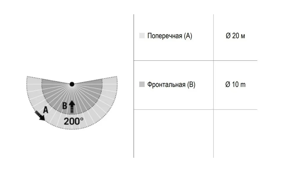 | диапазоном обнаружения поперек | Ø 20 м |
