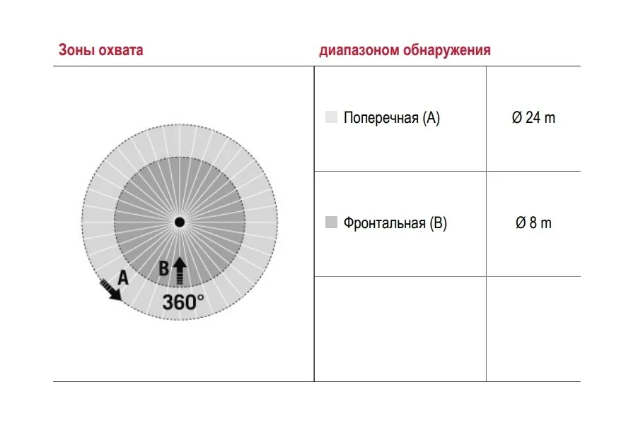 диапазоном обнаружения Фронтально Ø 8 м