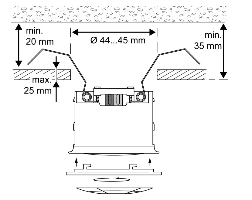 Установочное отверстие в потолке (Ø x D): 44 x 35 мм