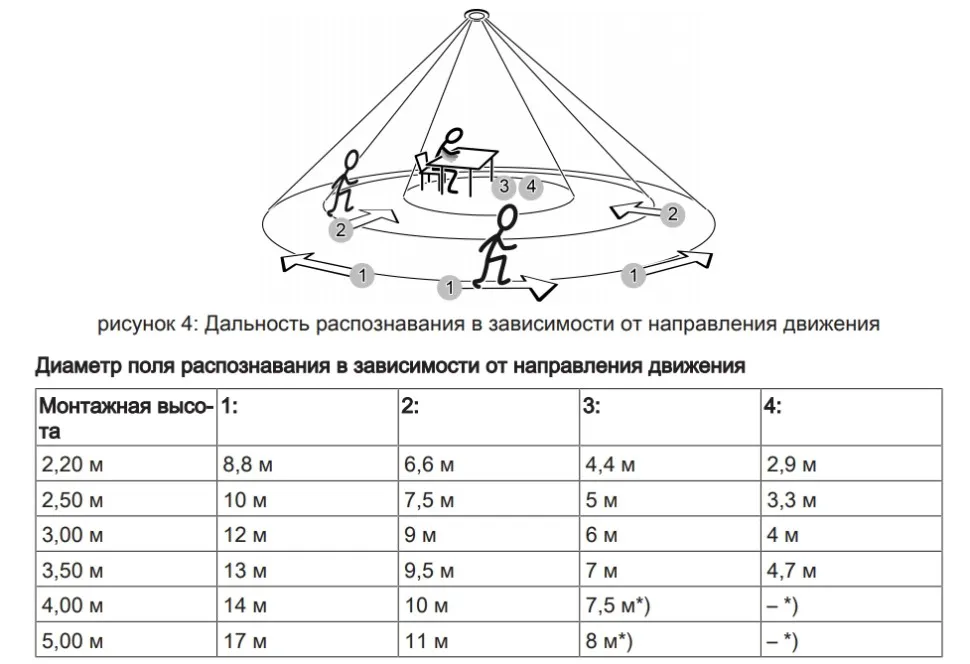 Диапазон зоны обзора: Ø около 12 м (высота установки 3 м)