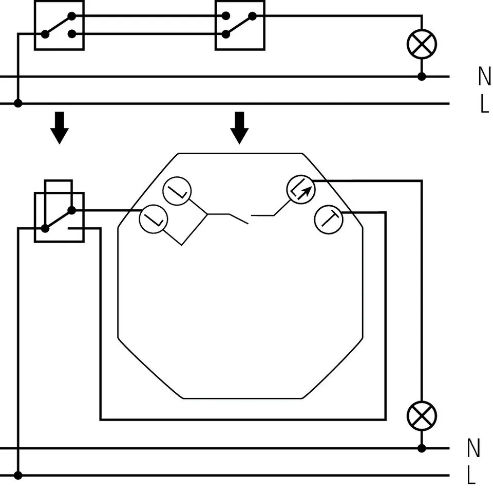 - Двухпроводное подключения (не требуется подключение «нуля»), идеально подходит для модернизации старых эл. сетей