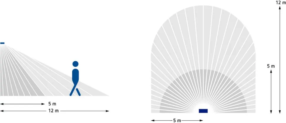 • Зона обнаружения может быть ограничена с помощью накладок на линзу.