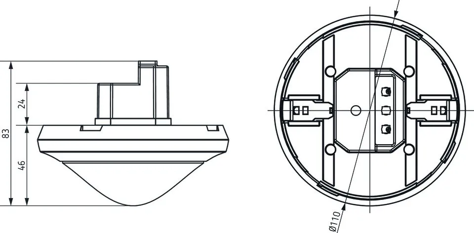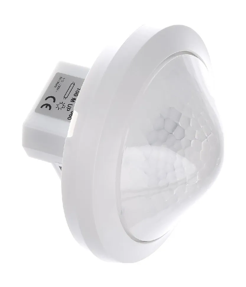 - Инфракрасный датчик движения для установки на потолок (врезной монтаж, в монтажную коробку)