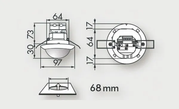 • Дистанционно управляемый потолочный датчик присутствия PD4-M-DIM-HVAC-FC с возможностью диммирования света для скрытого монтажа в подвесной потолок, с круговым диапазоном обнаружения и дальностью действия 24 м