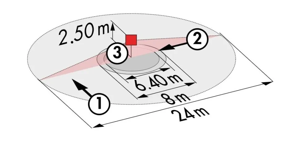 - Дальность действия перпендикулярно макс. Ø 24 м