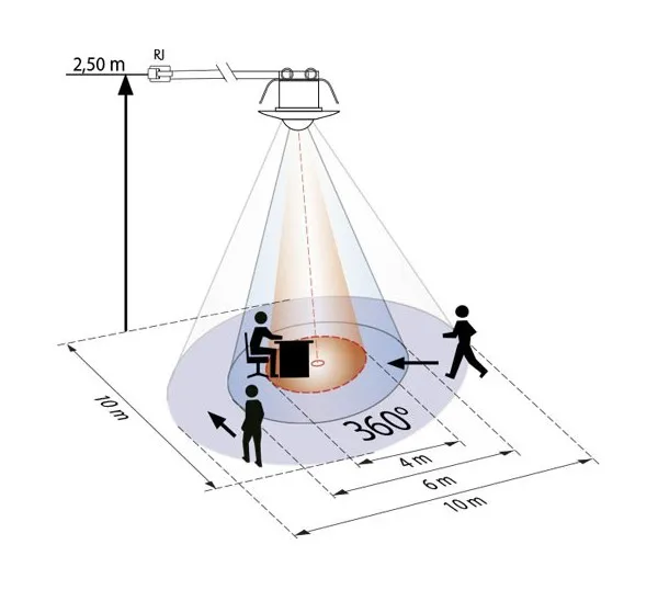 • Дистанционно управляемый потолочный мини датчик присутствия для внутреннего применения, в исполнении ведущего устройства, с круговым диапазоном обнаружения