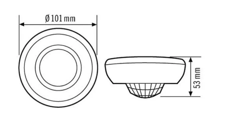 - Датчик присутствия с углом охвата 360° для потолочного монтажа