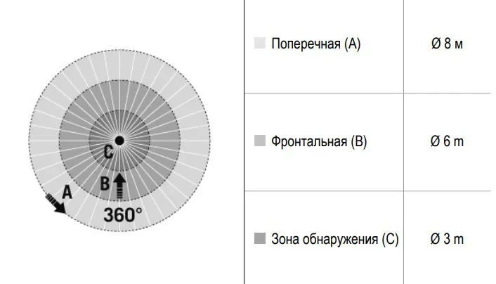 • Дальность действия до 8 м в диаметре при рекомендованной монтажной высоте 3 м, для установки в небольших помещениях и проходах с отсутствием или очень малой долей естественного освещения