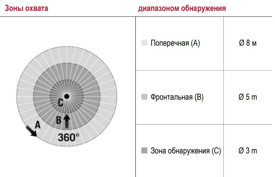 диапазоном обнаружения Фронтально Ø 5 м