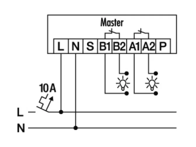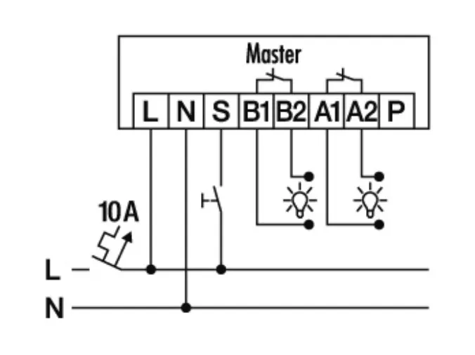 • Автоматическое управление освещением с 2 беспотенциальными размыкающими контактами для включения и выключения освещения по раздельным фазам или посредством аварийного питания 230 В ~ в зависимости от присутствия людей и яркости дневного света