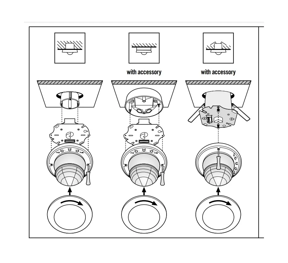 - Датчик присутствия с полем обнаружения 360° для потолочного монтажа. Скрытый монтаж.