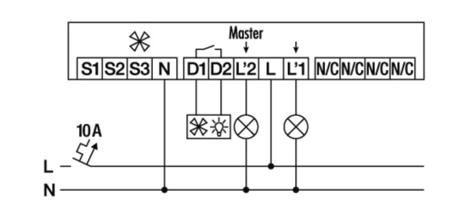 - Дополнительный контакт переключателя HVAC (канал 3) для включения дополнительного источника света или управления отоплением, вентиляцией и кондиционированием воздуха в зависимости от наличия.
