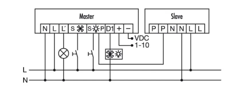 - Дополнительный переключающий контакт (канал 2) ОВК для включения дополнительного источника света или для управления отоплением / вентиляцией / кондиционированием в зависимости от наличия