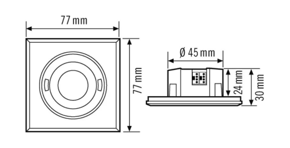 | Монтажные размеры | Глубина монтажа: 24 мм, Ø 45 мм |