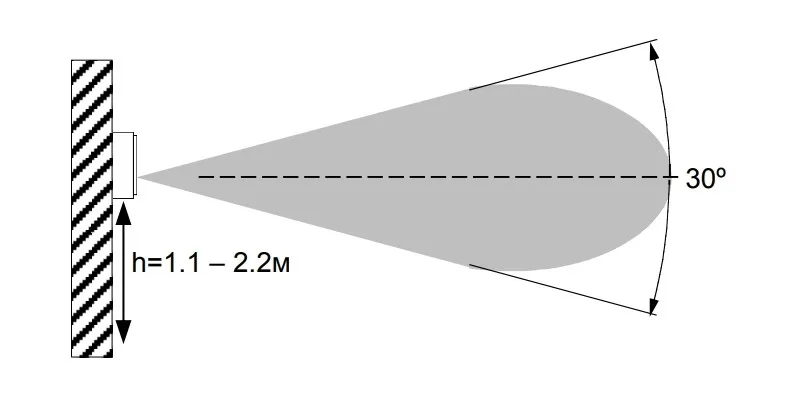 • Углы зоны детекции: 180° - по горизонтали, 30° - по вертикали