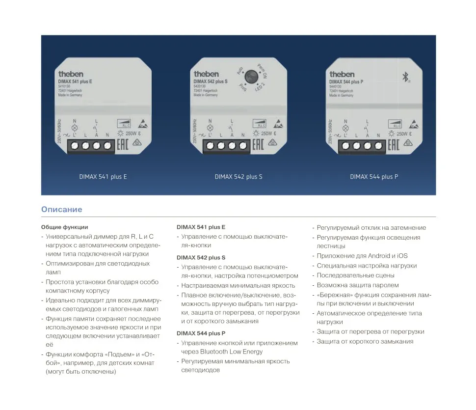 • Универсальный диммер для L, R, и С нагрузок, с автоматическим определением типа подключенной нагрузки