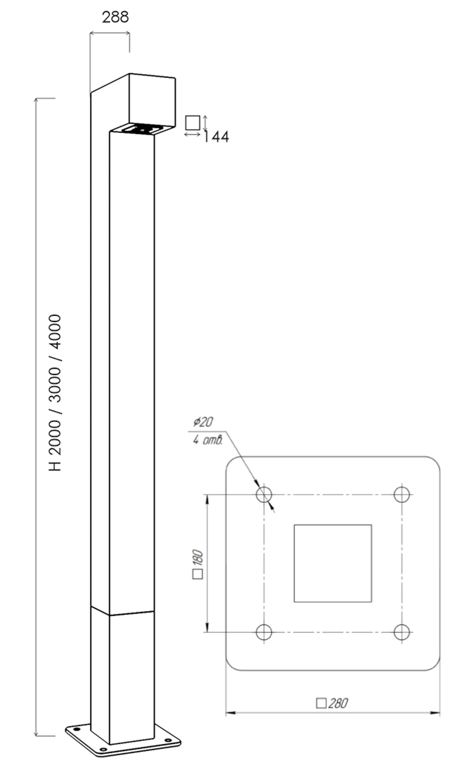 USES-1-40-020 L288 B144 H4000 20 W 3857 lm 3240 Lm 162 lm/w 0,1658м³ 69,9 28