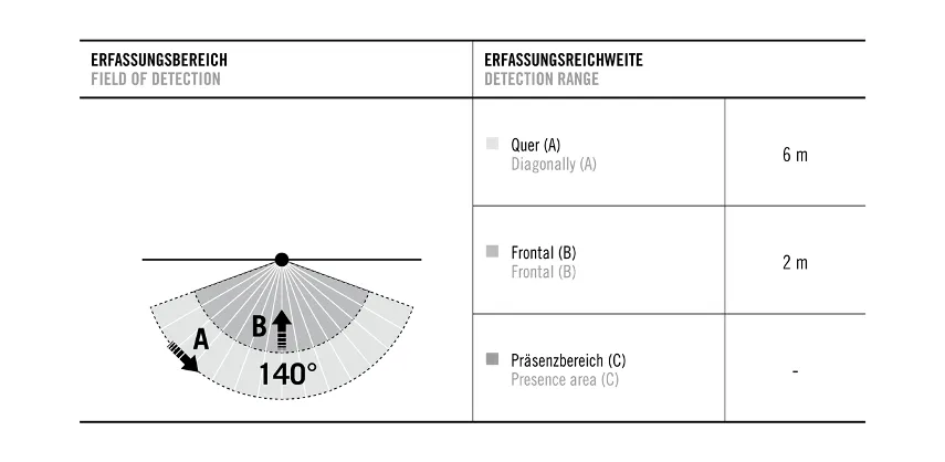 Угол обнаружения 140°