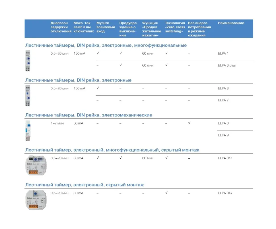 • Лестничные реле, врезной монтаж