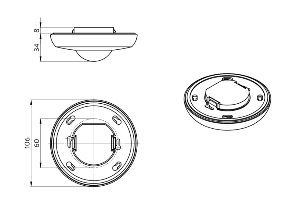 Зона обнаружения: горизонтальный 360° (потолочный монтаж)