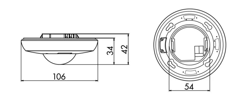 Зона обнаружения: горизонтальный 360° (потолочный монтаж)